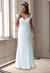 This elegant crepe gown is made with small decorated insert to the train. Sweetheart neckline edged with lace and finished with a zip fastening.Photographed in Ivory